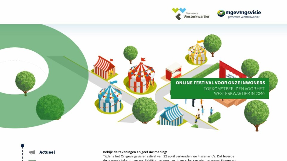 Daarvoor organiseren wij het online festival ‘Toekomstbeelden voor Westerkwartier in 2040’. Corona maakt dat we helaas nog steeds geen bijeenkomsten kunnen organiseren waarin we elkaar weer eens in levende lijven kunnen ontmoeten. We maken er samen een mooi online festival van!