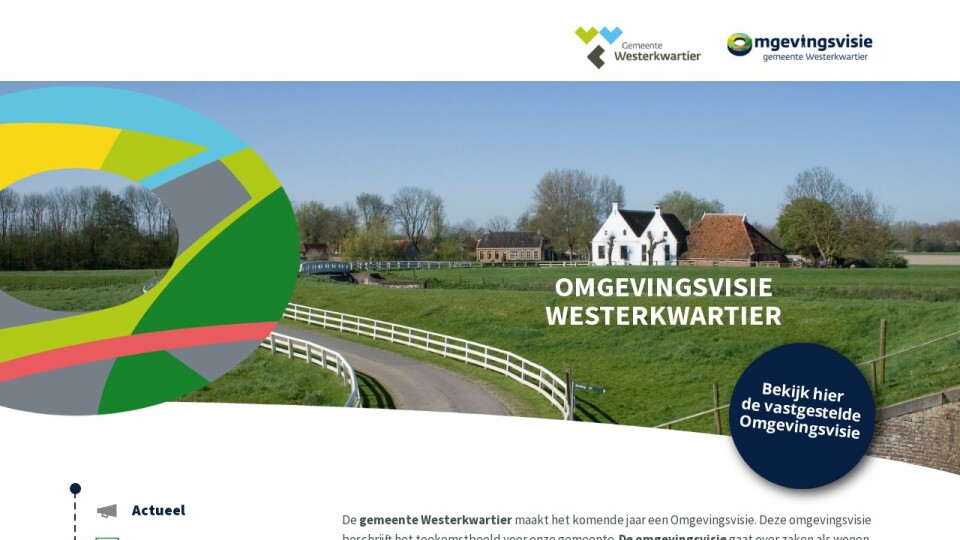 De gemeente Westerkwartier maakt het komende jaar een Omgevingsvisie. Deze omgevingsvisie beschrijft het toekomstbeeld voor onze gemeente. De omgevingsvisie gaat over zaken als wonen, werken en samen leven in Westerkwartier.